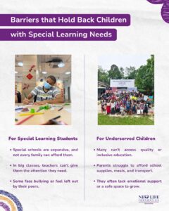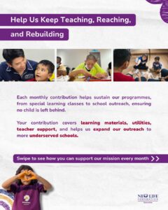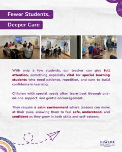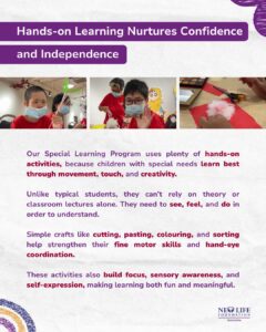 Through our Free Special Learning Programme, children with special needs receive patient, individualised guidance and hands-on learning to strengthen their motor skills, focus, and confidence π§π»