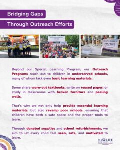 Beyond that, our Outreach Programme reaches children in underserved schools, where classrooms are worn down and resources are scarce. We provide essential learning materials, refurbish classrooms, and create brighter, safer spaces to learn π‘