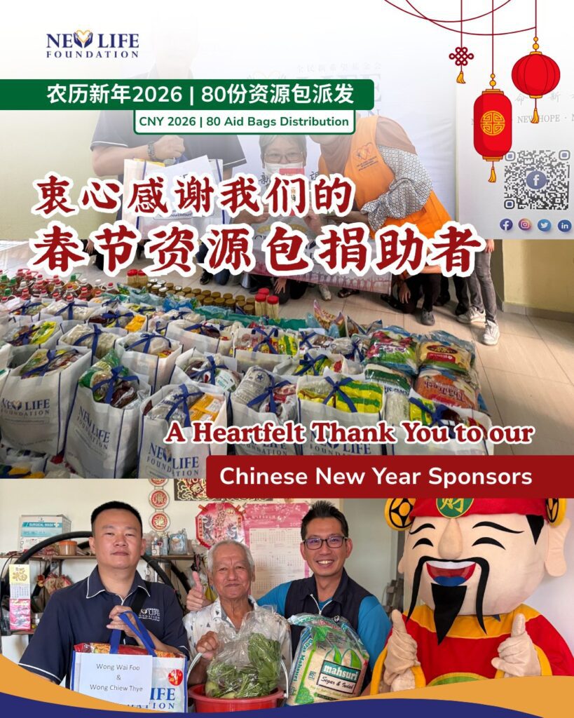 We would like to formally acknowledge the individuals and sponsors who contributed to our 2026 Chinese New Year Aid Pack distribution 🍊 This initiative took place at PPR Air Panas Setapak and through home visits around PPR Pinggiran Bukit Jalil, where 80 festive aid bags were distributed to underprivileged households 🏘️ Most recipients were elderly […]