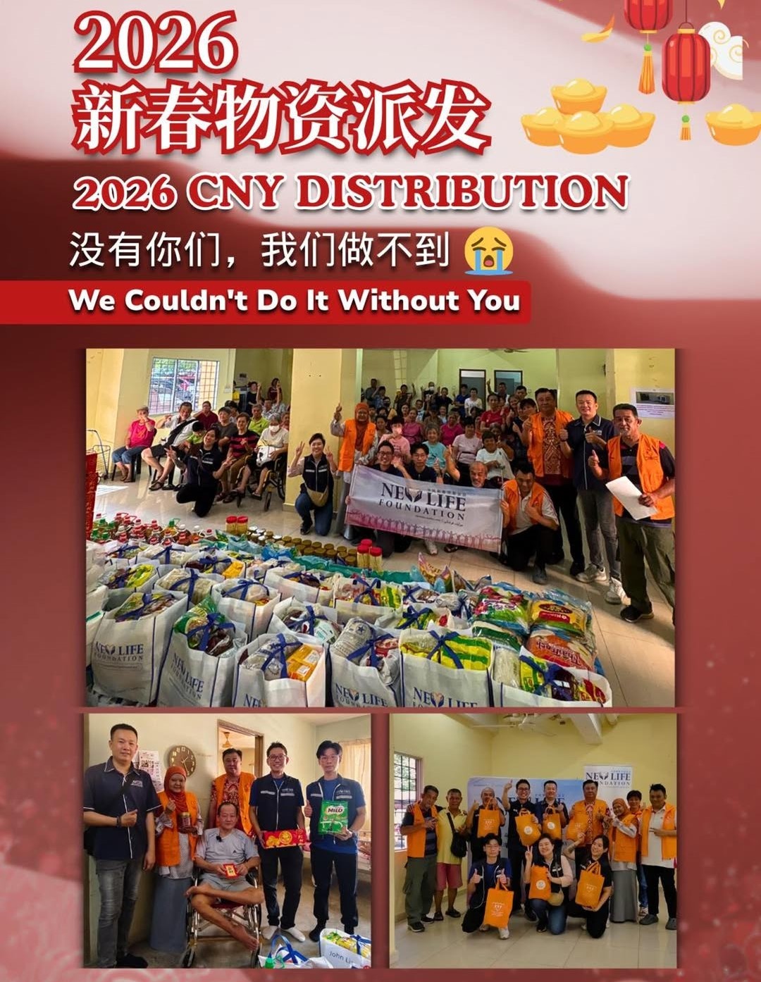 ๐ On February 8th, we visited various communities to distribute festive care packs to 80 families in need. Most of them are elderly living alone or individuals with disabilities. Some have children struggling to make ends meet far away ๐โโ๏ธ Some have lost their lifelong partners ๐๏ธ Others are navigating life alone with physical challenges.